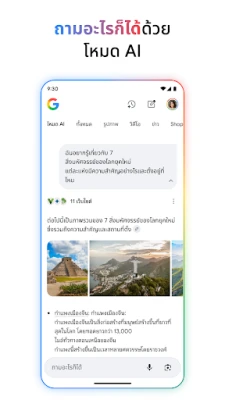 แอป Google คือเพื่อนคู่คิดของคุณ ช่วยให้คุณไม่พลาดทุกข้อมูลและเรื่องราวที่สนใจ ค้นหาคำตอบได้อย่างรวดเร็ว สำรวจโลกกว้าง และรับฟีดข้อมูลอัปเดตเฉพาะบุคคลที่สำคัญที่สุดสำหรับคุณ ยิ่งใช้แอป Google บ่อยขึ้น คุณก็จะได้รับข้อมูลที่ตรงใจและเป็นประโยชน์มากยิ่งขึ้น