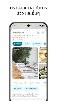 สัมผัสวิถีชีวิตและค้นพบสิ่งใหม่ๆ ได้ราวกับคนท้องถิ่น ด้วยพลังของข้อมูลจากผู้ใช้งานกว่า 500 ล้านคนทั่วโลกที่ช่วยอัปเดตแผนที่ให้ทันสมัยอยู่เสมอ หลีกเลี่ยงความแออัดด้วยการตรวจสอบความหนาแน่นของผู้คนในสถานที่ต่างๆ ล่วงหน้า ใช้ Maps Lens เพื่อดูเส้นทางเดินเท้าที่ทับซ้อนกับภาพจริง และกรองร้านอาหารตามความต้องการที่แม่นยำ ไม่ว่าจะเป็นประเภทอาหาร ช่วงเวลาเปิด-ปิด ราคา หรือคะแนนรีวิว นอกจากนี้ยังสามารถสอบถามข้อมูลสำคัญเกี่ยวกับสถานที่นั้นๆ ได้ทันใจ ไม่ว่าจะเป็นเมนูเด็ดหรือข้อมูลที่จอดรถ เพื่อประสบการณ์ที่สมบูรณ์แบบ สำหรับผู้ใช้งาน Wear OS สามารถเพิ่ม Tiles และ Complications เพื่อเข้าถึงการค้นหาและนำทางได้อย่างรวดเร็ว โปรดทราบว่าฟีเจอร์บางอย่างอาจไม่พร้อมให้บริการในบางประเทศหรือบางเมือง และระบบนำทางนี้ไม่ได้ถูกออกแบบมาสำหรับยานพาหนะขนาดใหญ่หรือรถฉุกเฉิน