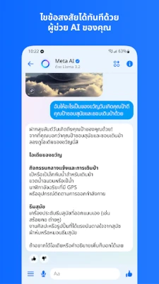 ยกระดับการสนทนาของคุณให้มีชีวิตชีวามากยิ่งขึ้น ด้วยการส่งรูปภาพความละเอียดสูงที่คมชัดและสร้างอัลบั้มภาพความทรงจำร่วมกัน ไม่ว่าจะเป็นทริปในฝันหรือวันพิเศษของคนที่คุณรัก Messenger ช่วยให้คุณเก็บและแบ่งปันช่วงเวลาอันมีค่าได้อย่างสมบูรณ์แบบ สัมผัสพลังแห่งนวัตกรรมกับ Meta AI ผู้ช่วยส่วนตัวอัจฉริยะที่พร้อมตอบทุกข้อสงสัย ให้คำแนะนำ หรือแม้แต่เป็นคู่คิดสร้างสรรค์ช่วยรังสรรค์ภาพและเนื้อหาตามจินตนาการของคุณ นอกเหนือจากนี้ การแชร์เอกสารสำคัญอย่าง Word, PDF หรือ Excel ขนาดใหญ่สูงสุด 100 MB ก็ทำได้โดยตรงในแชท